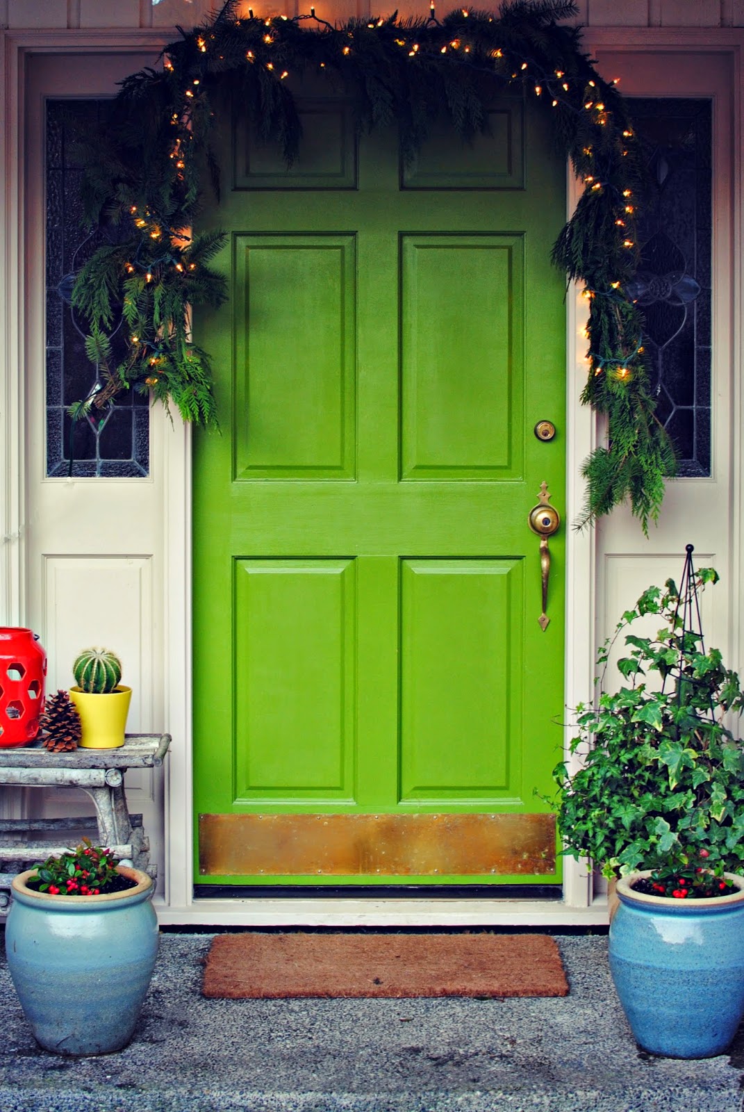 ^ Not gonna lie, I love the way the sassy cedar tips are a dead match to the color of my front door. I didn't plan it that way, but I sure enjoy the play of feathery organic branches against the strict geometry of the door panels, in almost identical shades of green.